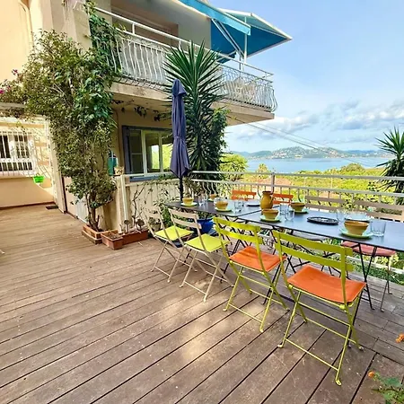 Le Rivage - Appartement Au Coeur Du Village Hyères ligger cirka 5 minuter till fots från Square Bachagha Boualam och har utsikt över havet. Gästerna kan använda Wi-Fi för antingen jobb eller fritid.